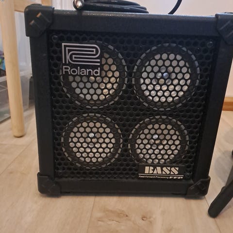 Vähän käytetty bassovahvistin. Ollut vain sisätiloissa ja käsitelty varovasti. Paljon erilaisia toimintoja, niistä enemmän täällä: https://www.gear4music.fi/fi/G4M/Roland-Micro-Cube-Bass-RX-bassovahvistin/8MO
