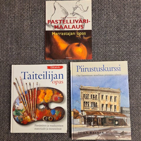 4 erilaista taide/piirustuskirjaa, ks. kuvat. Myydään kaikki kerralla. Nouto tai toridooli.