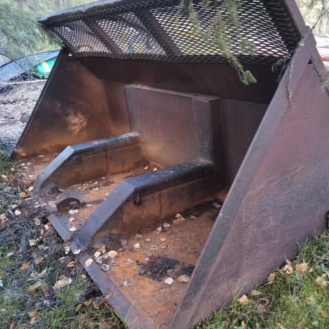 Uusi biolanin erotteleva kuivikekäymälä. Säilytyslaatikko ei enää uudenveroisessa kunnossa.