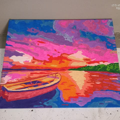 Hempeä ja tunnelmallinen pieni teos. Harmaan vihreät kehykset.