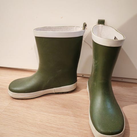 Pinkit käytetyt kumisaappaat. Tummentumaa löytyy, mutta mielestäni varsin siistit yleisilmeeltään.