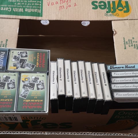 Kuvan vanhat c- kasetit tarjouksen perusteella. nauhat ehjät, olleet lämpimässä sisävarastossa. itse äänitetty jotain, jos kellä kiinnostusta niin pistä tarjousta tulemaan. postitus pikkupakettina 7e