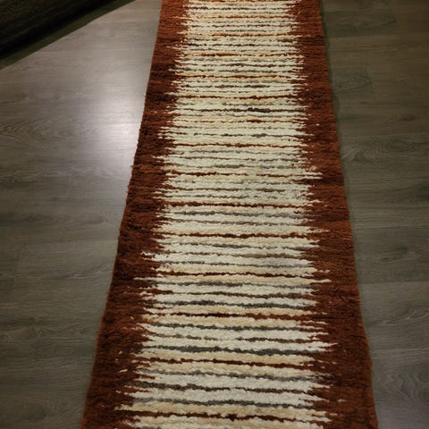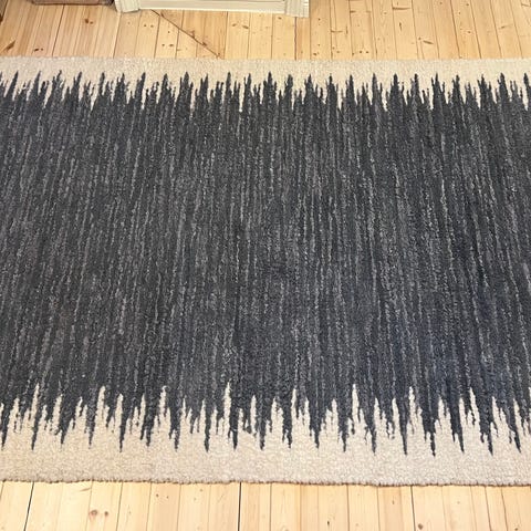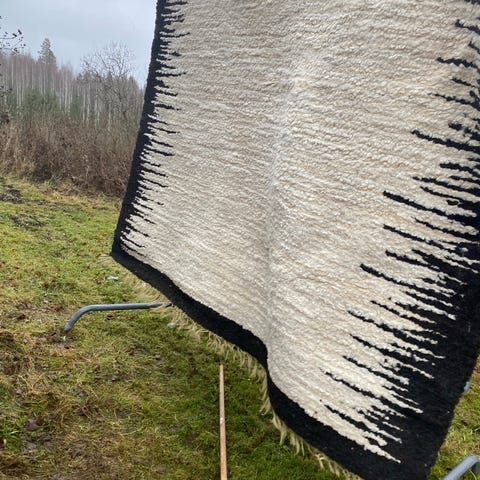 Aito käsin kudottu lammasnahkamatto 100% lampaan nahkaa. Matto on miellyttävän pehmeä ja kestää kovaa kulutusta, likaa hylkivä. Matto on Kotimainen desing matto. Valmistaja Carpet Halla-aho. Koko pituus 250cm ja leveys 183cm. Matto on ruutu harmaa musta uutena hinta 600€ neliö. Tästä nyt edullisesti katseen vangitsija kotiin tai mökille.