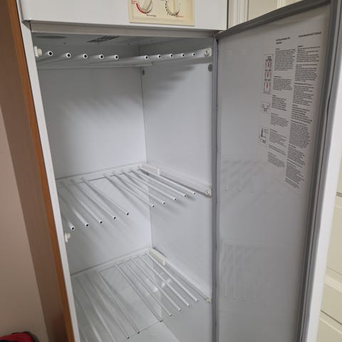 Iäkäs, mutta toimiva Cylinda TS60- merkkinen kuivauskaappi. Korkeus 191 vm, syvyys 61 cm, leveys 60 cm.