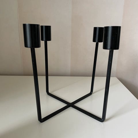 Kuvanmukainen, metallinen kynttelikkö. Pölyt kaupanpäälle. Vain nouto.