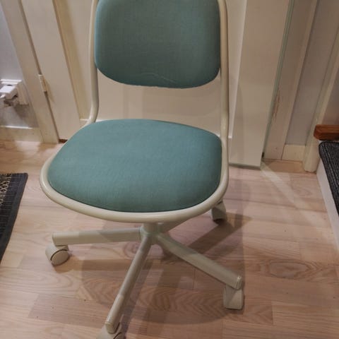 IKEA Örfjäll lasten työtuoli, sininen väri. Tuolissa on pyörät ja säädettävä korkeus. Sopii lapsille istuinkalusteeksi esimerkiksi työpöydän ääreen.