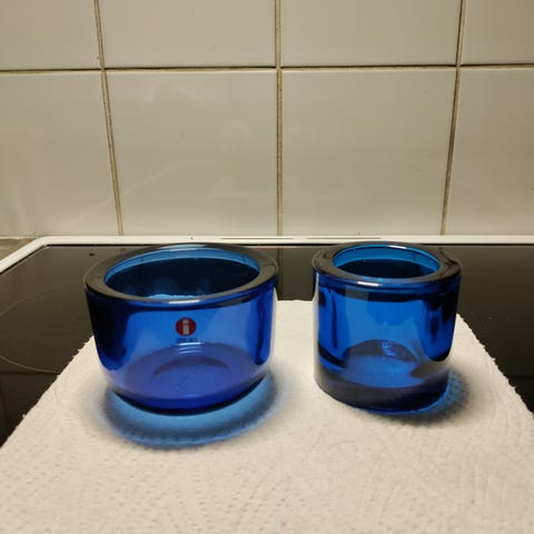 Kahden kpln setti. Ei käytönjälkiä. Muottinumeroitu. Lähes mustat. Mustikan sininen? Kelpaa esim lahjaksi