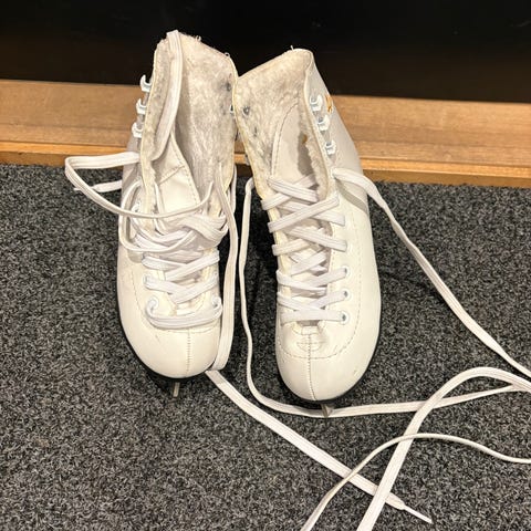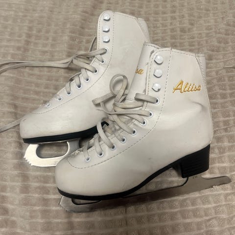 Aliisa lasten luistimet koko 32, väri valkoinen. Luistimissa on perinteinen nauhoitus ja mustat korot. Sisävuori on pehmeä ja lämmin.