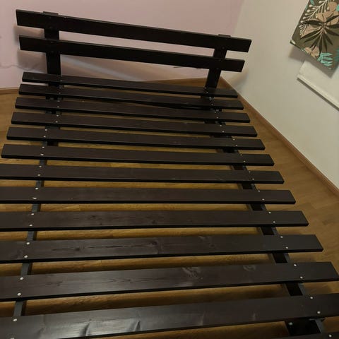 Myydään hyväkuntoinen 160x200 cm sänkyrunko sekä siihen sopiva futon-patja. Tyylikäs ja tukeva kokonaisuus makuuhuoneeseen tai vierashuoneeseen.