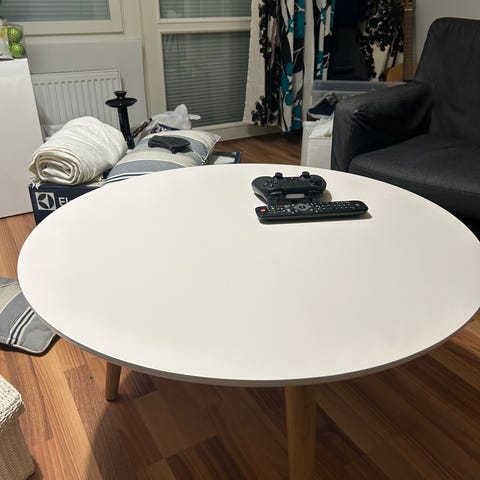 Jysk pieni pyöreä pöytä tammi mustat metallijalat