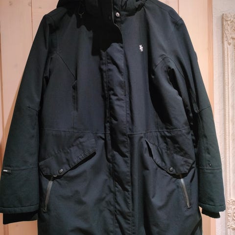 Todella vähällä käytöllä ollut ahkka gold toppatakki, koko 46. Väri musta, mukaan huppuun karvareunus