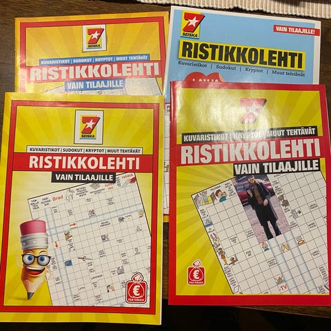 Vaihtuvat Fazerin Sininen -suklaalevyyn tai 3 euroon. En ole kaikkia selannut sivu sivulta läpi ovatko kauttaaltaan tyhjiä mutta pikaselailulla ei osunut silmään täytettyjä sanoja.