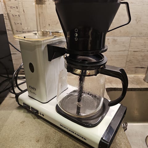 Toimiva ja puhdistettu moccamaster kahvinkeitin.