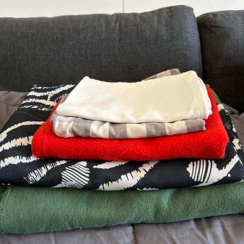 Hyväkuntoisia puhtaita joulutextiilejä osa käyttämättömiä.