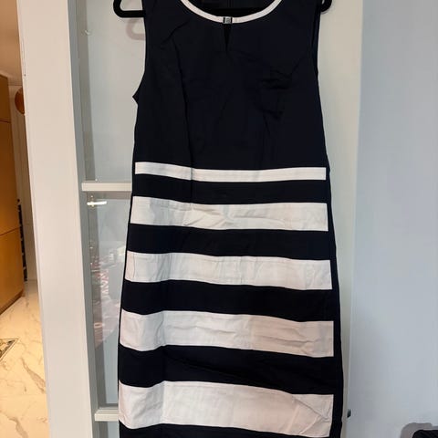 Gerry Weber Collection musta naisten mekko, koko L/XL. Valmistettu polyesteristä. Mekossa on koristeelliset paljettihihat. Pyöristetty helma. Taskut löytyy. Sopii erilaisiin juhlatilaisuuksiin ja arkeen. Kai-kai mitta 60 cm. Pituus takaa kauluksesta helmaan mitattuna 102 cm.