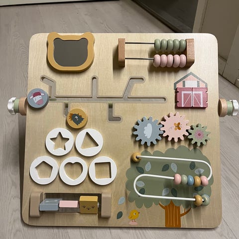 Little Dutch lasten lelukaari, jossa on ripustettavat pehmolelut. Lelukaari on valmistettu puusta ja sopii pienille lapsille aktiviteettien ja leikin tueksi. Ostettu helmikuussa 2025 ja ollut hyvin vähällä käytöllä.