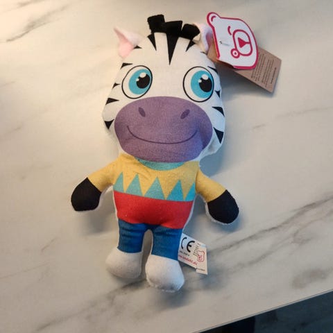 Suloinen seepra pehmolelu. Siisti kunto, mutta jonkin verran käytön jälkiä.
