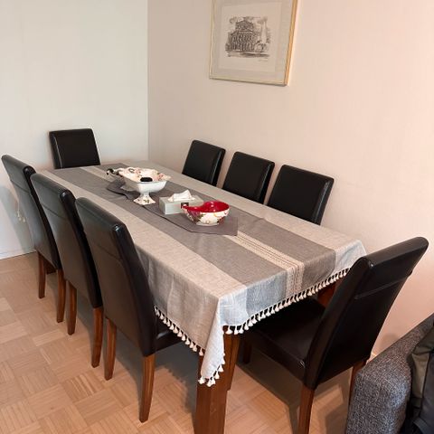 Kaunis, tyylikäs pöytä isommallekin perheelle.