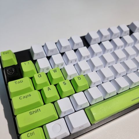 Valkoinen runko, valkoisella LED-valaistuksella, valkoisilla PBT-näppäinhatuilla sekä Cherry MX Blue kytkimillä. Hyväkuntoinen, ei mitään huomautettavaa. Kytketään USB-A-kaapelilla, mukaan USB-C sovitin.