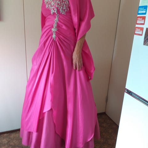 Myydään hyväkuntoinen (2x päällä ollut) turkoosi juhlapuku. Pituus noin 1m40cm ja rinnan ympäryys noin 80cm. Puvussa ei ole merkittynä kokoa, mutta vastaa noin kokoa 38. Mukaan tulee myös pukuun kuuluva hartiahuivi. Puku sopii esim. vanhojen tansseihin. Kulkeutuu pienellä viiveellä myös Pirkanmaalle.
