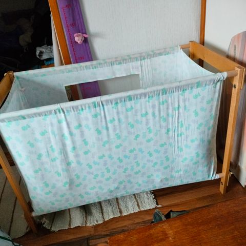 Pituus 124cm leveys 64cm korkeus 76cm sisältää hyttys verkon, patjan ja säilytys pussin