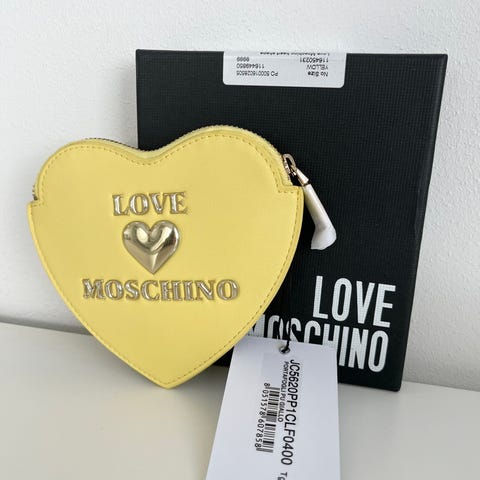 Aito Love Moschino tikattu (quilted) zip-around lompakko, ostettu Stokmannilta noin 10–15 vuotta sitten. Todella hauska ja uniikki vintage-malli: toisella puolella klassinen Love Moschino -logo punaisella sydämellä, toisella puolella kultainen pöllö-lukko sinisillä “kivi silmillä”.