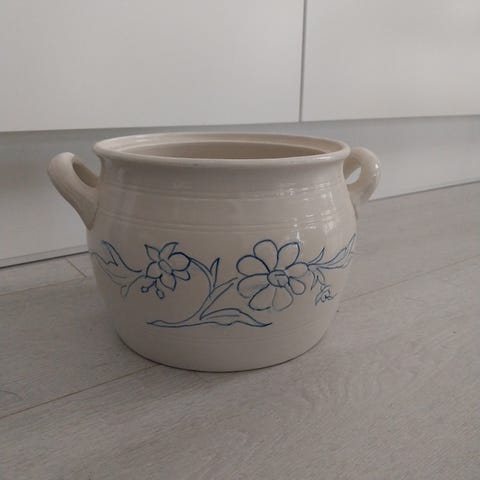 Arabian kruunuleimallinen voipytty. Halkaisija 18 cm ja korkeus 14 cm. Yläreunassa kolo, muuten oikein siisti. Kissataloudessa, Muhoksella keskustaajamassa. Myynnissä myös muualla.