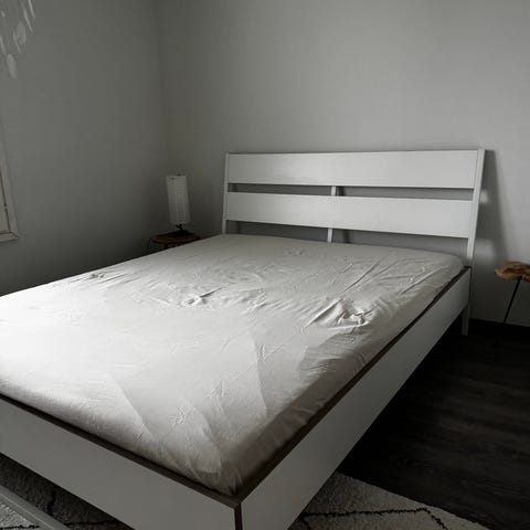 Kuljetuksen myötä pinnallinen kuluma jälki tullut rungon sisäpinnalle, jonka sälepohja luultavasti peittää. Muuten on uuden veroisessa kunnossa. Sälepohjassa ei kulumajälkiä. Sängynrunko ei mahtununut nykyiseen asuntooni, joten siksi tämän myyn. Sänky on valmiiksi osissa.