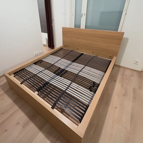Muutama kk sitten ostettu sängynrunko. Kuvassa näkyy myös Ikean Lönset sälepohja, jos ei tarvetta sille niin pelkän rungon hinta 100€