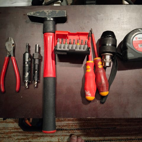 Keltakahvaiset läpilyöntiterällä olevat pozidriv kärjelliset lähes käyttämättömiä