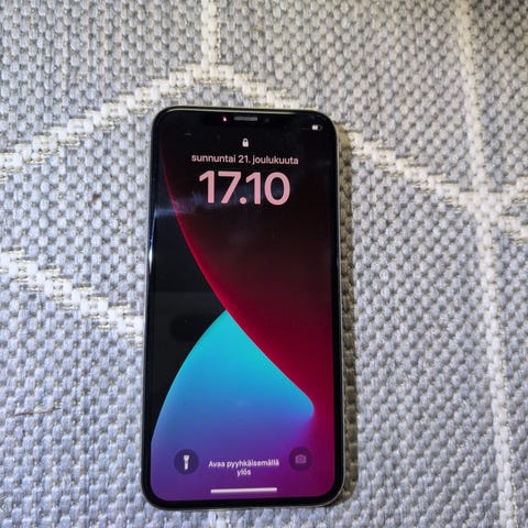 Apple iPhone X 64 GB, väri musta. Akku peräti 96%. Hyvässä kunnossa. Pitkä latausjohto ja kotelo sisältyvät hintaan.