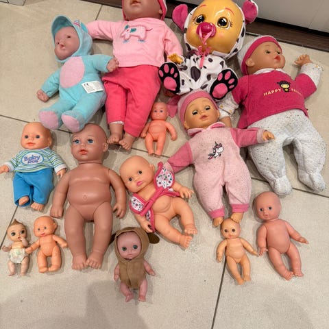 Hyväkuntoiset, yhdellä lapsella käytössä olleet nuken yhdistelmävaunut. Kopan saa siis irti, jolloin toimivat rattaina. Jonkin verran kulumaa (ks. kuvat) ja yksi tussinjälki.