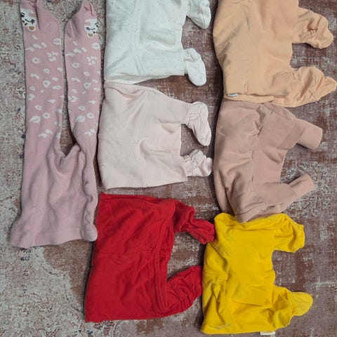 Myydään 4 housut + yhdet sukkahousut koossa 50-56. Kaikki tuotteet ehjinä ja siistejä.