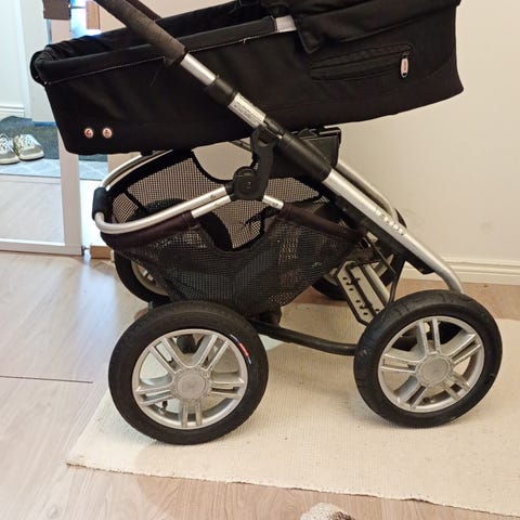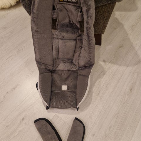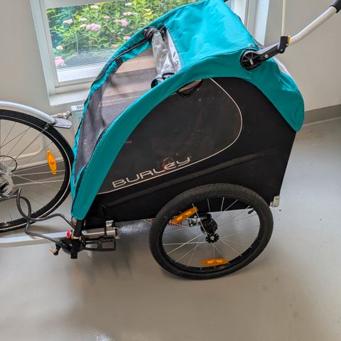 Vähän käytetyt etupyörät Burley pyöräkärryyn, niin että kärryä voi käyttää kuten lastenvaunuja.