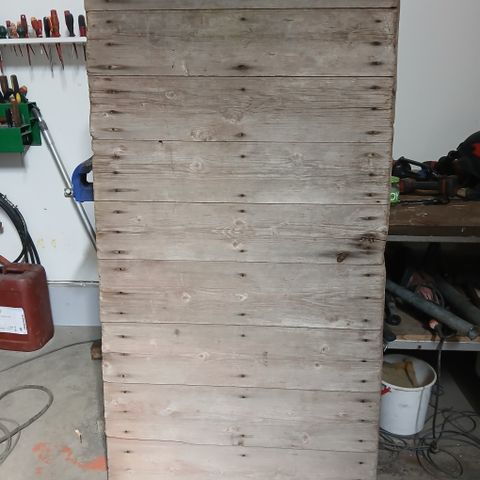 Hyvässä kunnossa oleva aitan ovi lukolla. Korkeus 140cm ja leveys 95cm