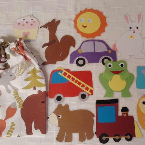 Kuvat vastaa lorua. Kartonkia ja päällystetty kontaktimuovilla.
