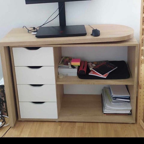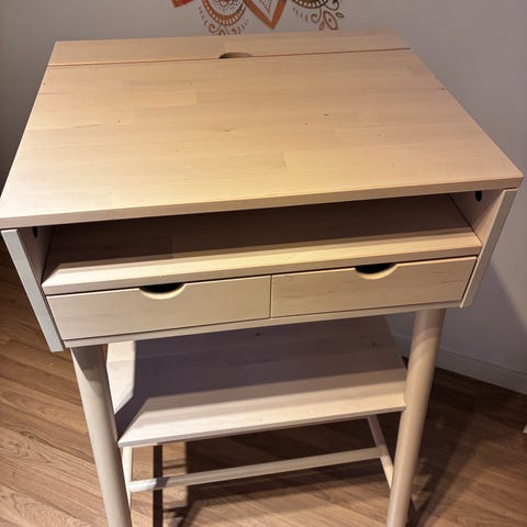 Siistissä kunnossa oleva työpöytä, bambua, kannessa yksi isompi vekki ja pientä muuta naarmua, kaikista kuvat. Yleisilme edelleen siisti ja muuten ehjä. Hinta Ikeassa 160e. Ruokapöytä, ruokaryhmä.