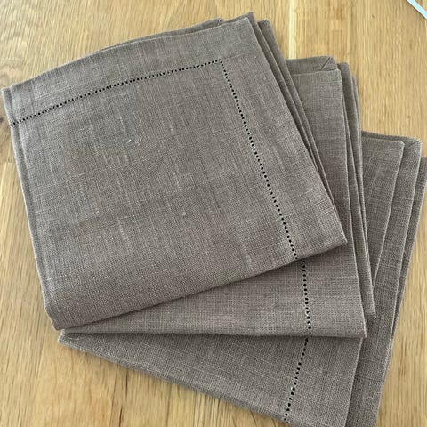 2 kpl pellavasta kudottuja kaitaliinoja. Sekä lisäksi 4 kpl käyttämättömiä beigejä ruokapöytätabletteja (pakkaus avattu kuvaamista varten). Yhteensä 5 euroa.