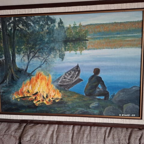 Myydään isokokoinen ja upea maisemataulu uuteen kotiin. On hyvässä kunnossa. Ollut kahdessa siistissä kodissa, joissa ei ole poltettu tupakkaa, eikä ole hometta. Taulun takana lukee ostopaikka, vuosi ja ostajan nimi.