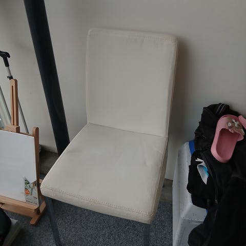 Valkoinen tuoli säilytystilalla VARATTU haku klo 19.30