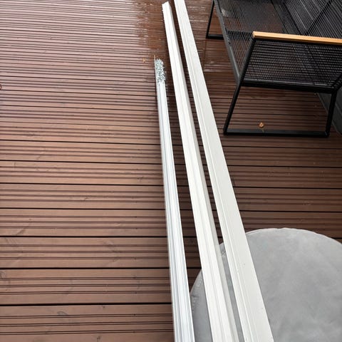 Valkoinen Eurokankaan kisko uudenveroinen. Pituus 150 cm. Hinta 10€. Katso toinen ilmoitukseni kiinnikkeistä.