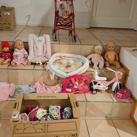 Iso setti nukenhoitotarvikkeita seuraavalle leikkijälle.