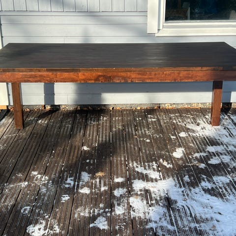 - Kansi hunajapetsi öljytty koivu, jalat ja kannen reuna valkoiseksi maalattu.