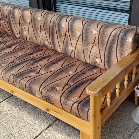 Levitettävä puinen sohva annetaan tilanpuutteen vuoksi pois.
