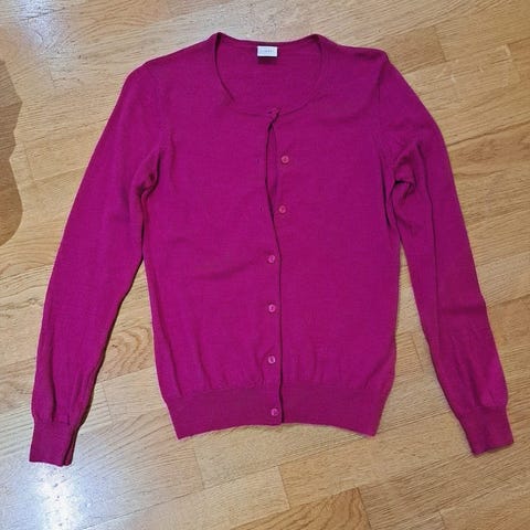 Myyn uusiseelantilaisen Bay Road Merinon pitkän merinovillaisen villatakin kokoa 12 eli M. Väri on Tui Blue.