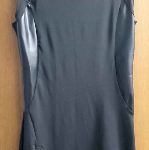 Musta mekko, jossa vetoketju takana ja vyölenkit. Siisti, vaikka juhliin tai ihan arkeen. Pituus 50cm ja vyötärö (ei jousta) sivu-sivu 42cm