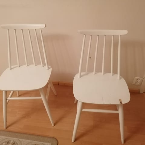 Annetaan 2 kpl pinnatuoleja. Tästä jollekin hyvä entisöintiprojekti! Muutoin ehjät tuolit mutta maalipinta on kulunut. Itse olen nämä aikanaan ostanut käytettynä mutta entisöinti sitten jäänyt ja enää itsellä ei ole tarvetta näeille tuolelle. Ota yhteyttä jos tuolit kiinnostaa!