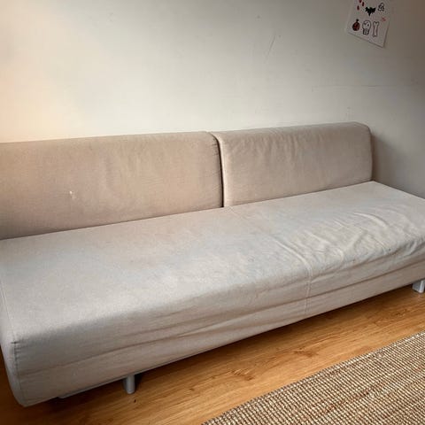 Käytännöllinen futon vuodesohva joka taipuu sekä sohvaksi että vuoteeksi