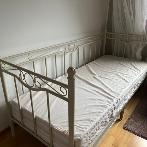 Annetaan sohvasänky säilytyslaatikolla. Iso sohva, jossa alta vedettävä lisäosa muuttaa toisen puolen sängyksi. Lisäksi säilytystila esim petivatteille. Annetaan pois muuton tieltä.