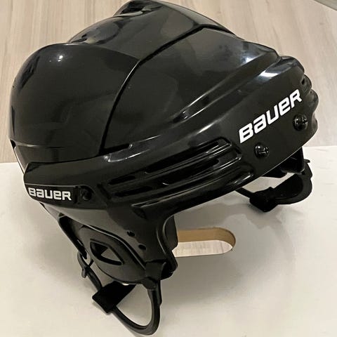 Bauer Jääkiekko kypärä, valkoinen väri. En onnistunut löytämään kokomerkintää, mutta veikkaan koko M. Tästä peruskypärä lapselle, nuorelle tai aikuiselle ulkojäille tai muuhun harrastetason pelailuun / luisteluun.